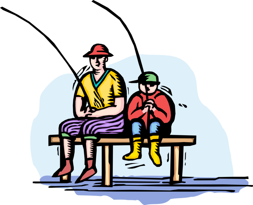 Vector Illustration Of Father And Son Fish From Dock Pai E Filho Vetor Pescaria Clipart Full Size Clipart 1580674 Pinclipart